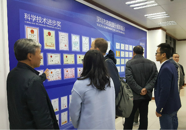 布魯諾院長一行在深圳期間,董事長陳宜言大師陪同他們參觀了我公司的設計成果展示墻、人才團隊展示墻以及設計大師工作室、BlM院等部門,展示了我公司的技術團隊、科技成果、企業文化和辦公環境等。